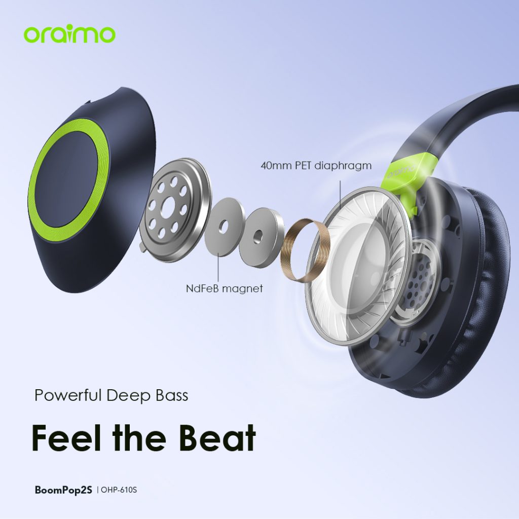Powered by advanced 40mm drivers and exclusive HavyBassTM technology, BoomPop2S is meticulously designed to offer music enthusiasts an unparalleled sound experience, characterized by incredibly deep and dynamic bass.