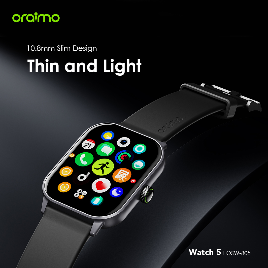 The oraimo Watch 5 is as thin as 10.8 mm and weighs only 41.4 grams. Its aluminum alloy case, paired with a stainless steel digit crown endows itself a stylish nature.